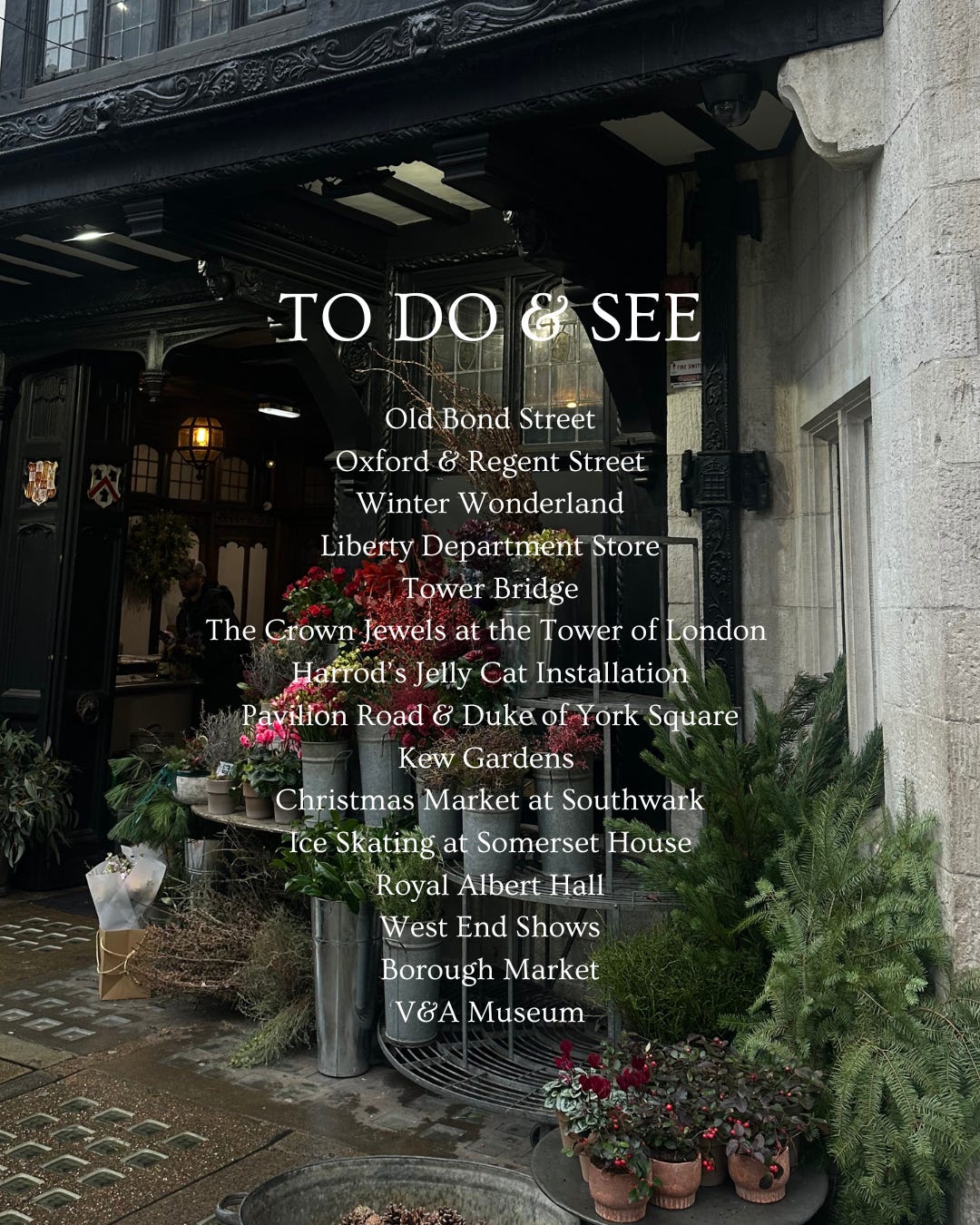 There’s nothing more magical than London in the winter months. It’s everything you’ve ever imagined of a Christmas Rom Com. The twinkling lights, mulled wine, festive music, and the chaos of department stores and last minute shopping. There’s so many ways to enjoy London during the Holidays as seen in Love Actually and Bridget Jones. It’s magical if you’re solo, with a partner, or with family. You really can’t go wrong, unless of course… you sit in the hotel room and do nothing. Let me help with that. Below are a just a few of my favourite places to eat and things to do for the holiday season. Trust me, there’s so much more. But it can get overwhelming so this is a good place to start.